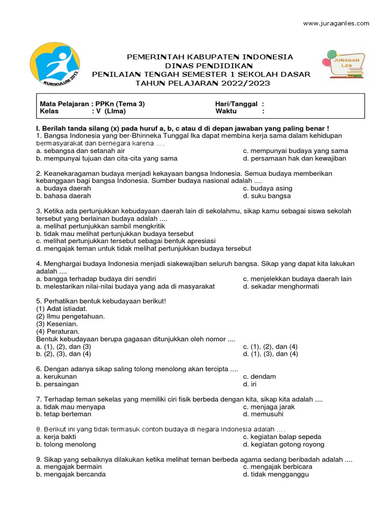 Artikel ini akan menyajikan berbagai contoh soal PPKn Kelas 1 SD Islam yang dirancang untuk tidak hanya menguji pemahaman, tetapi juga membangkitkan minat belajar siswa. Kita akan menjelajahi bagaimana soal-soal ini dapat mengintegrasikan nilai-nilai keislaman, membangun kesadaran berbangsa dan bernegara, serta menumbuhkan sikap positif dalam berinteraksi sosial.