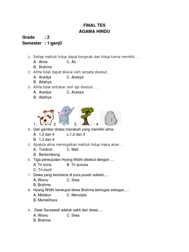 Persiapan untuk Tingkat Selanjutnya: Pemahaman yang kuat tentang dasar-dasar Agama Hindu di kelas 2 SD akan menjadi bekal penting bagi siswa untuk melanjutkan pembelajaran di kelas-kelas berikutnya. Soal-soal tahun 2018 dapat membantu memastikan fondasi pemahaman tersebut sudah kokoh.